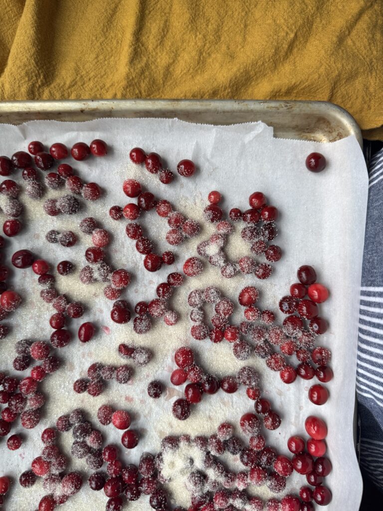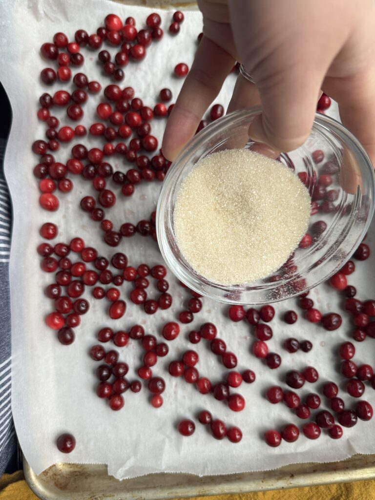 Step 7: Use the Sparkling Cranberries straight away or store in the refrigerator in an airtight container for about 2 days. If they start to look a bit wet and sticky, toss in a bit more granulated sugar to revive. Enjoy! (Ideas on how to serve below!)